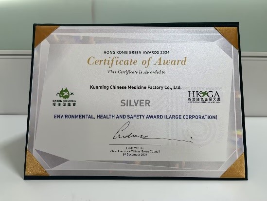 À¥ÖÐÒ©ÈÙ»ñ2024ÄêÏã¸ÛÂÌÉ«ÆóÒµ´ó½±¡ª¡°³¬×¿»·±£°²È«½¡È«½±¡±Òø½±