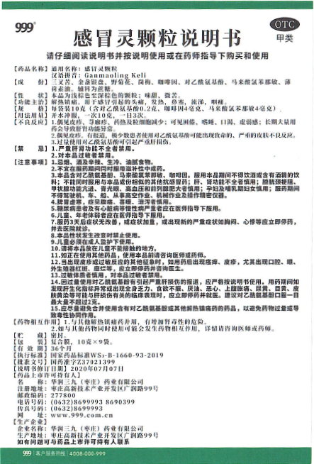 <dt>药品名称</dt><dd> 感冒灵颗粒</dd>