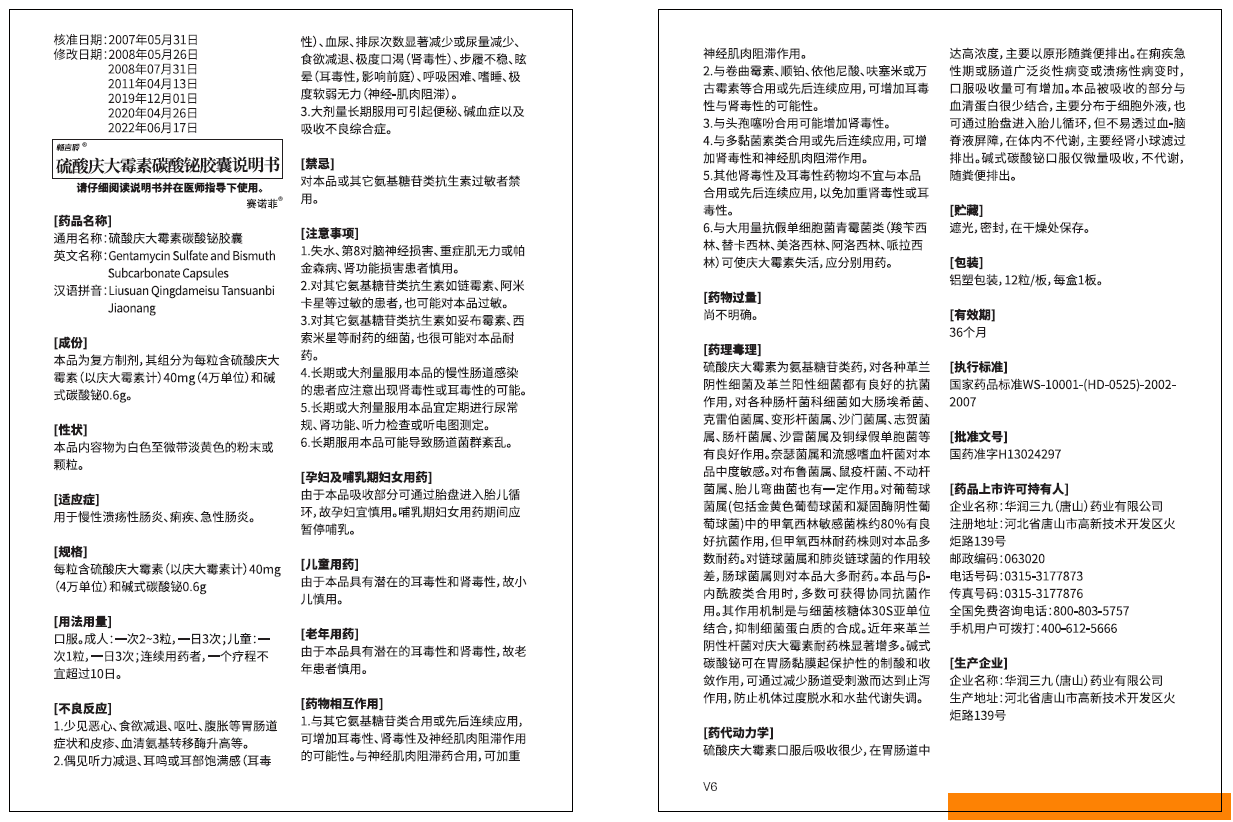 硫酸庆大霉素碳酸铋胶囊说明书v6