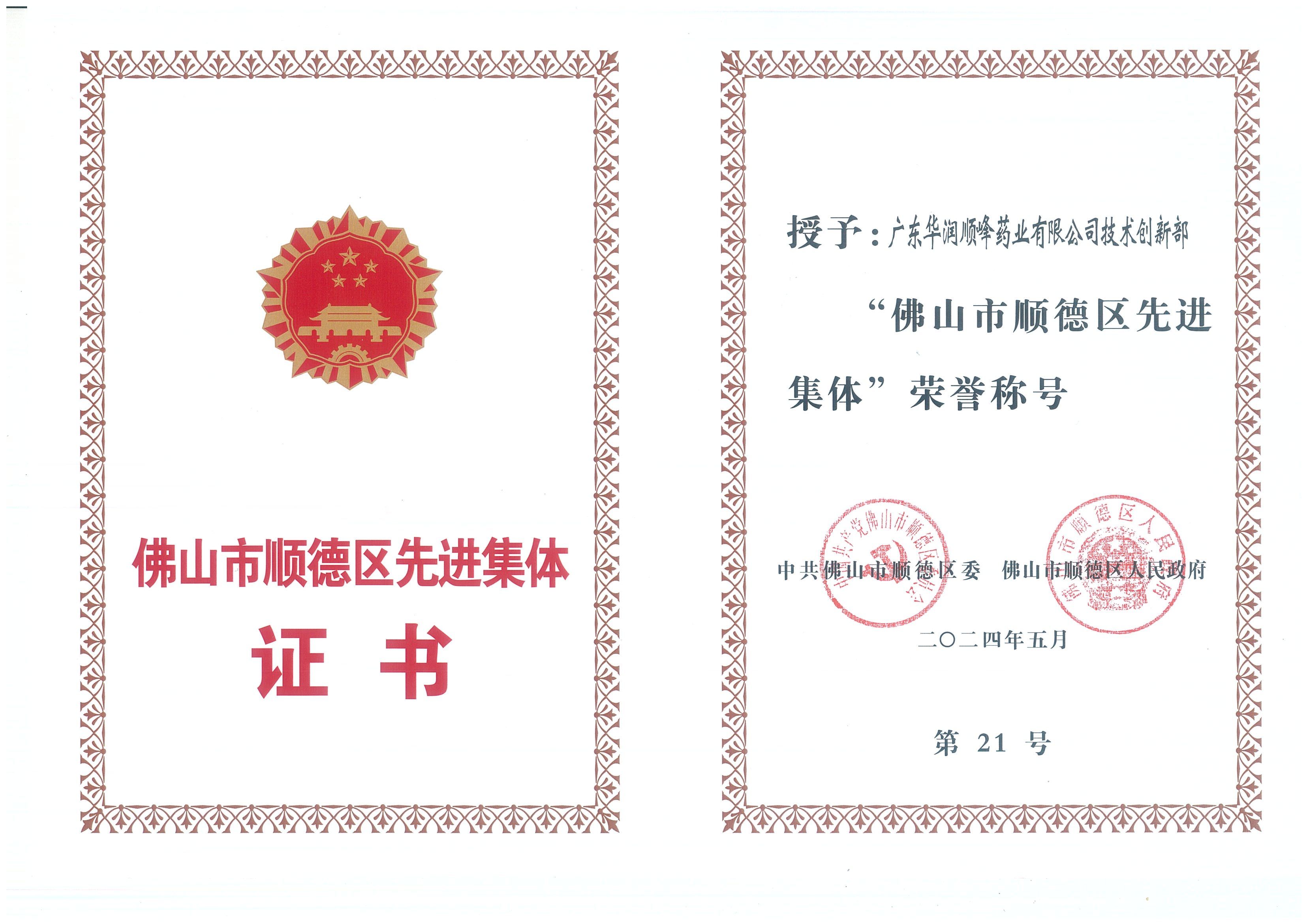 2024年5月28日下午,2023年佛山市顺德区劳动圭表、先进劳动者和先进集体赞美大会在顺德区当局主楼四楼会议室隆沉召开。为进一步弘扬劳模心灵、劳动心灵、工匠心灵,奏响新时期奋斗者之歌,大会赞美20名顺德区劳动圭表、40名先进劳动者和30个先进集体。其中,我司广东华润顺峰药业有限公司技术创新部凭借其卓越的贡献和成就,荣获“佛山市顺德区先进集体”荣誉称号!
