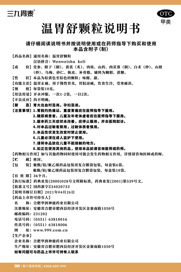 温胃舒颗粒 10g x 6袋