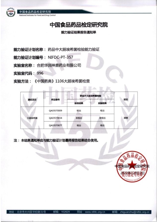 近日,在中国食品药品检定钻研院颁布的2023年的能力验证打算汇报中,华润神鹿检验中心参与的“药品中霉菌和酵母菌总数计数能力验证(NIFDC-PT-446)”及“药品的比旋度测定能力验证(NIFDC-PT-406)”别离荣获中意证书。大连中食国实检测技术有限公司颁布的2023年的能力验证打算汇报中,华润神鹿检验中心参与的“中药材中水分和总灰分的测定能力验证(CFAJPA-2296)”同样荣获中意证书。上述四项中意证书的获得,标志取2023年华润神鹿检验中心参与上述能力验证项目全数通过,并陆续5年通过能力验证。